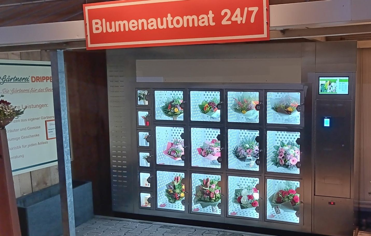 Sie benötigen einen Blumenstrauß mitten in der Nacht oder spontan am Wochenende? Bei uns kein Problem mehr. Unser neuer Mitarbeiter, der Blumenautomat 24/7 bedient Sie zu jeder Tages- und Nachtzeit mit von uns gebundenen frischen Sträußen oder kleinen arrangierten Geschenken.